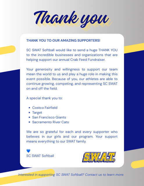 SC SWAT is an elite travel baseball and softball organization based in Solano County, California. Our organization believes it is important to mentor and develop talent rather than simply recruit it, and our team acronym says it all: